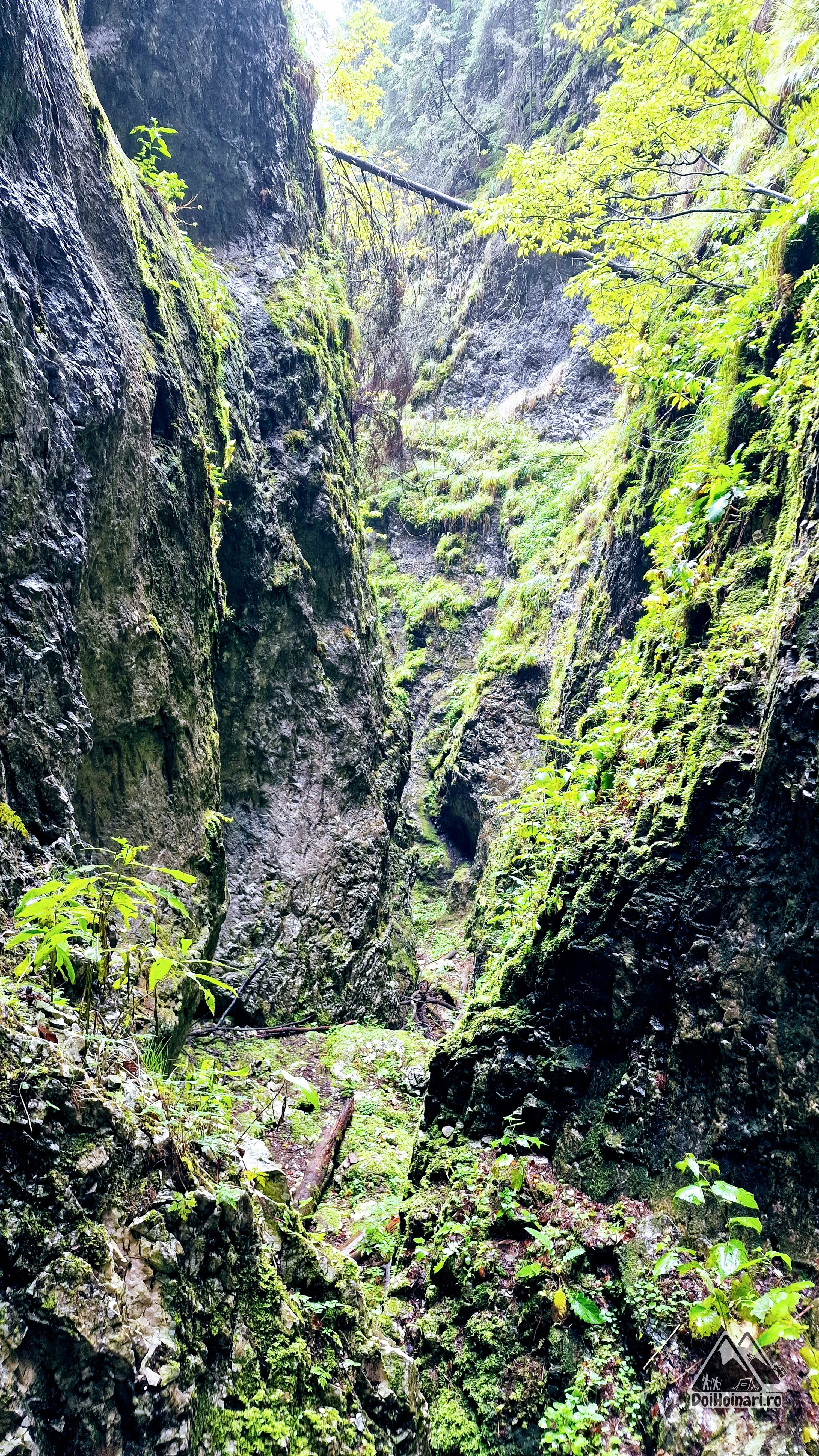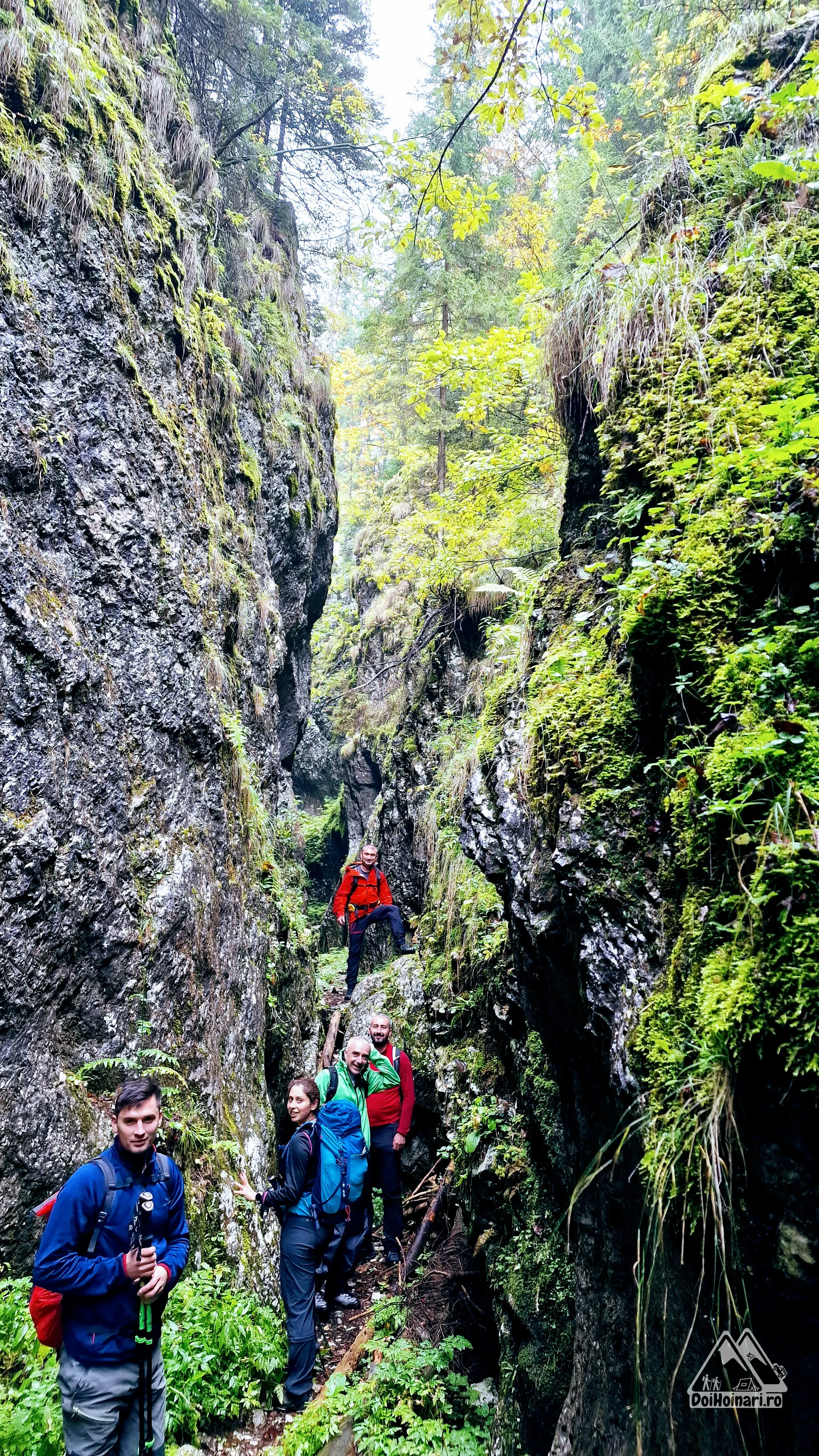 Din loc în loc trebuie să trecem praguri înalte care ne cam dau de furcă . Dar nu ne pare rău de haine (pe care le murdărim și le punem la încercare pe piatră udă) și înaintăm vitejește.